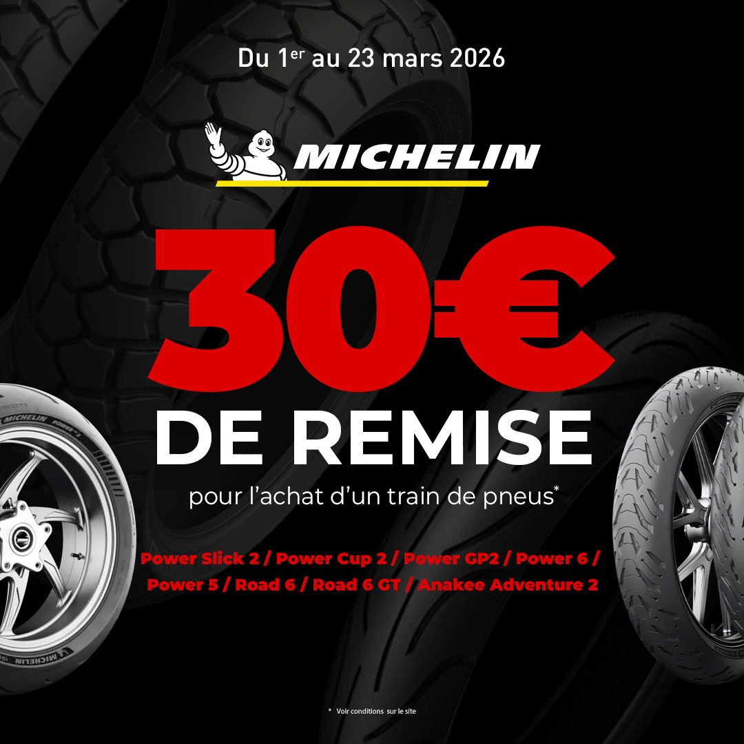 pour l'achat d'un train de pneus : Power Slick 2, Power Cup 2, Power GP2, Power 6, Power 5, Road 6, Road GT, Anakee Adventure 2.*
